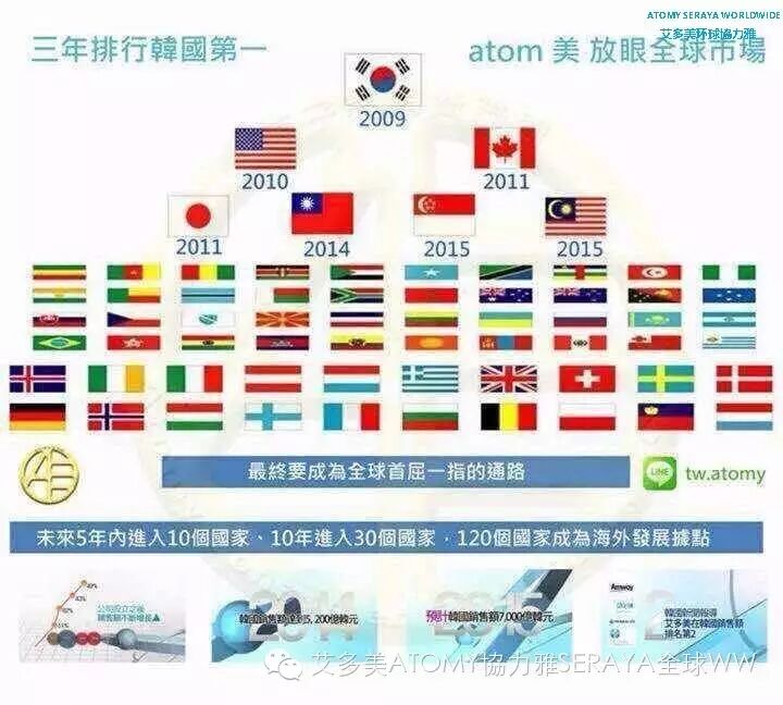 2009年成立于韩国 2010年5月从美国开始为全球化起步,2011年日本、加拿大,2014年台湾 并于2014年获得出口营业额突破一千万美元的大赏 2015年新加坡分公司、陆续扩大于马来西亚、柬埔寨、菲律宾等东南亚市场,继续进军中国、南美、俄罗斯市场,国际连线 可做全球市场.全球人口高达70亿人、让更多的国际友人加入艾多美购物都跟我们有关。、那么不成功都是奇迹!